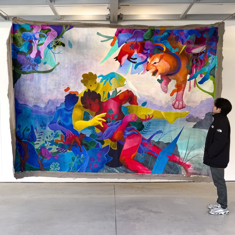 Reflecting a unique fusion of Andean and European influences, Tremos’ work explores themes of cultural identity, memory, and syncretism. His pieces blur the boundaries between figurative and abstract art, merging vibrant colors, traditional symbols, and contemporary techniques. By employing diverse materials such as textiles and paint, Tremos crafts dynamic installations that challenge conventional narratives and provoke reflection on post-colonial realities. Each work stands as a testament to his ongoing exploration of the intersections between personal heritage and contemporary artistic expression.