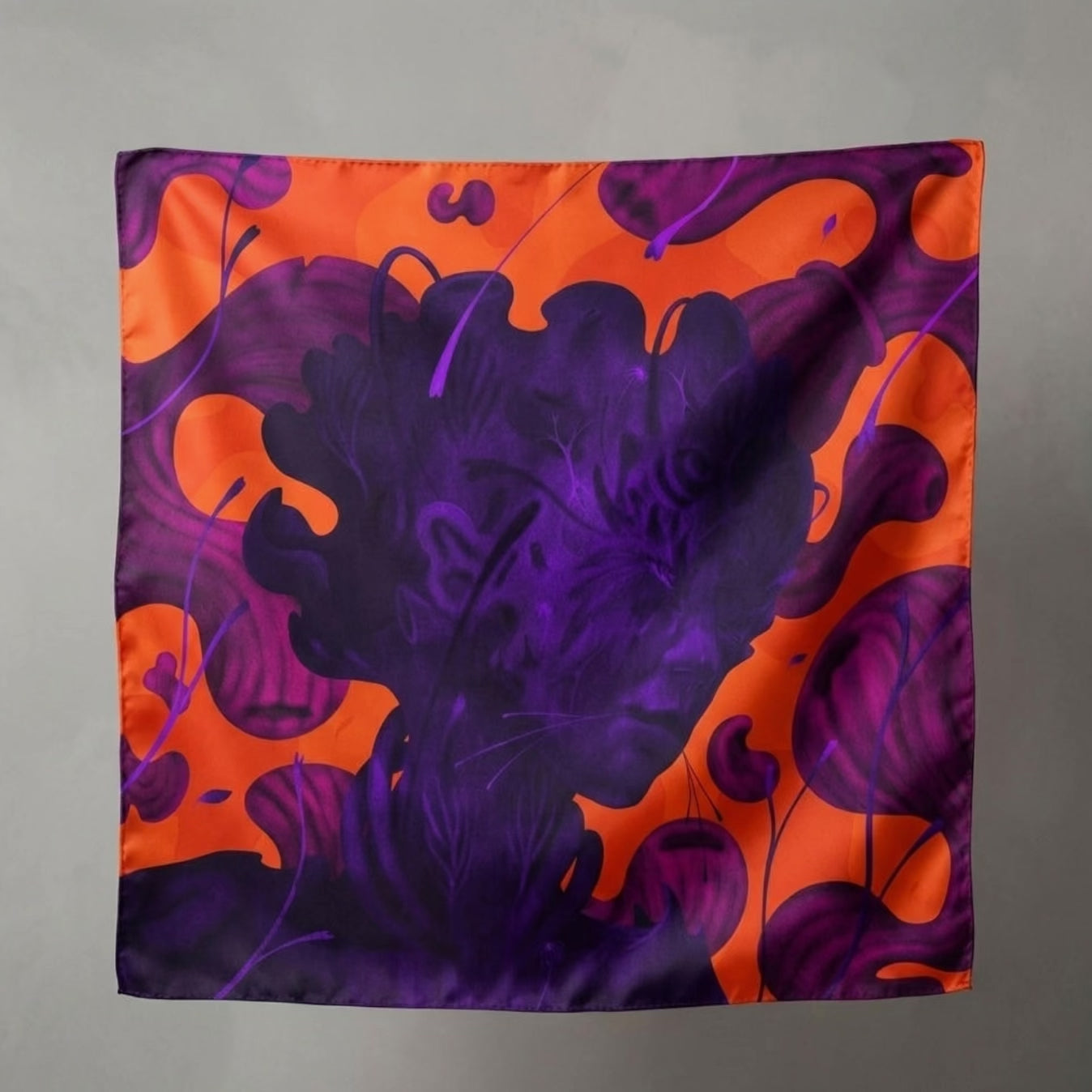Impreso por ambas caras en seda morera de alta calidad, este pañuelo se puede leer desde ambos lados, creando una continuidad visual y simbólica. Cada pieza está concebida como una pieza de colección, en la intersección del arte contemporáneo, los textiles y la edición limitada.